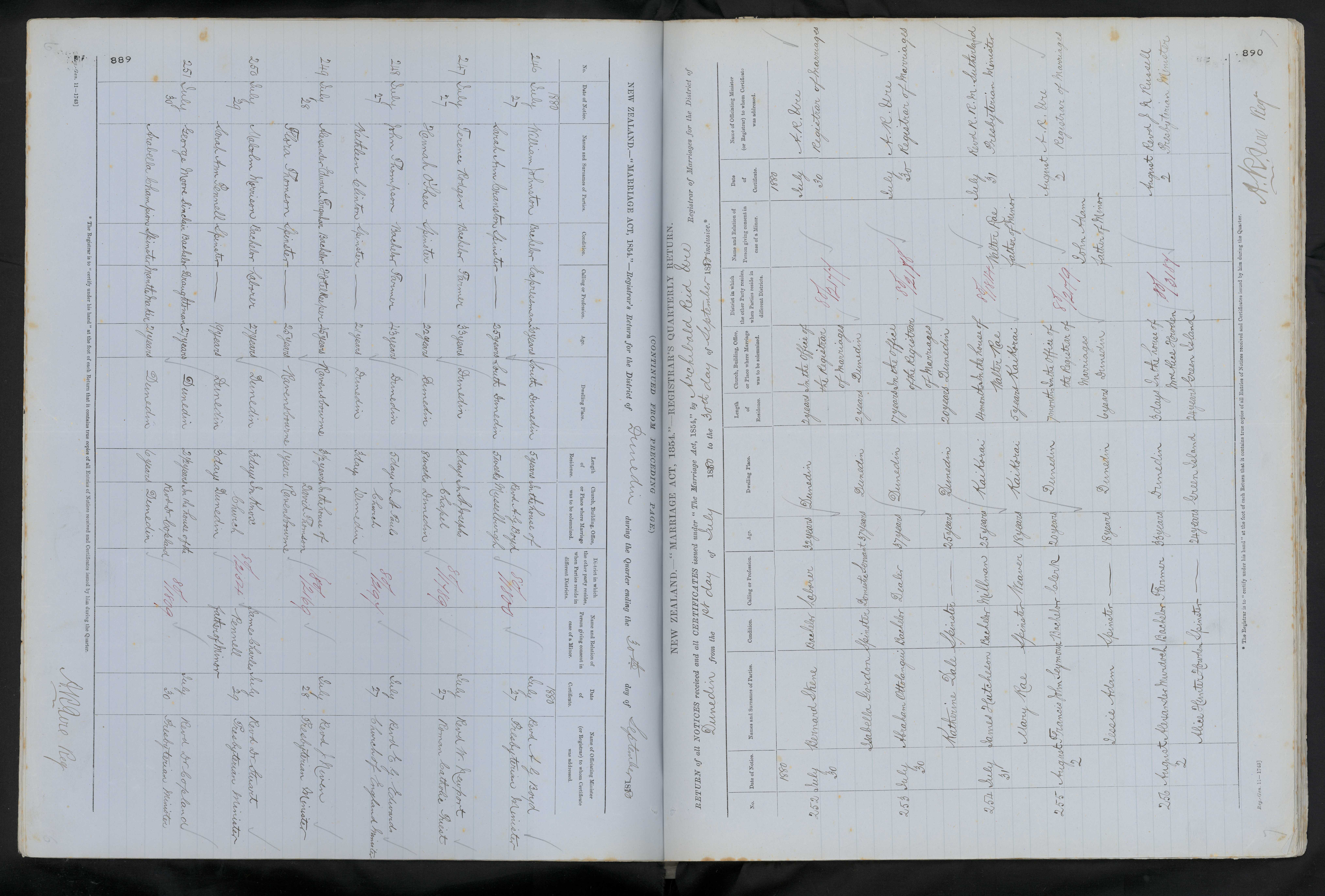 In the office of the Registrar of Marriages Dunedin | 80/255 | John Adam father of Minor | 2 August 1880 | A.R. Ure Registrar of Marriages | ||||||||||||||||||||||||||||||||||||||||||||||||||||