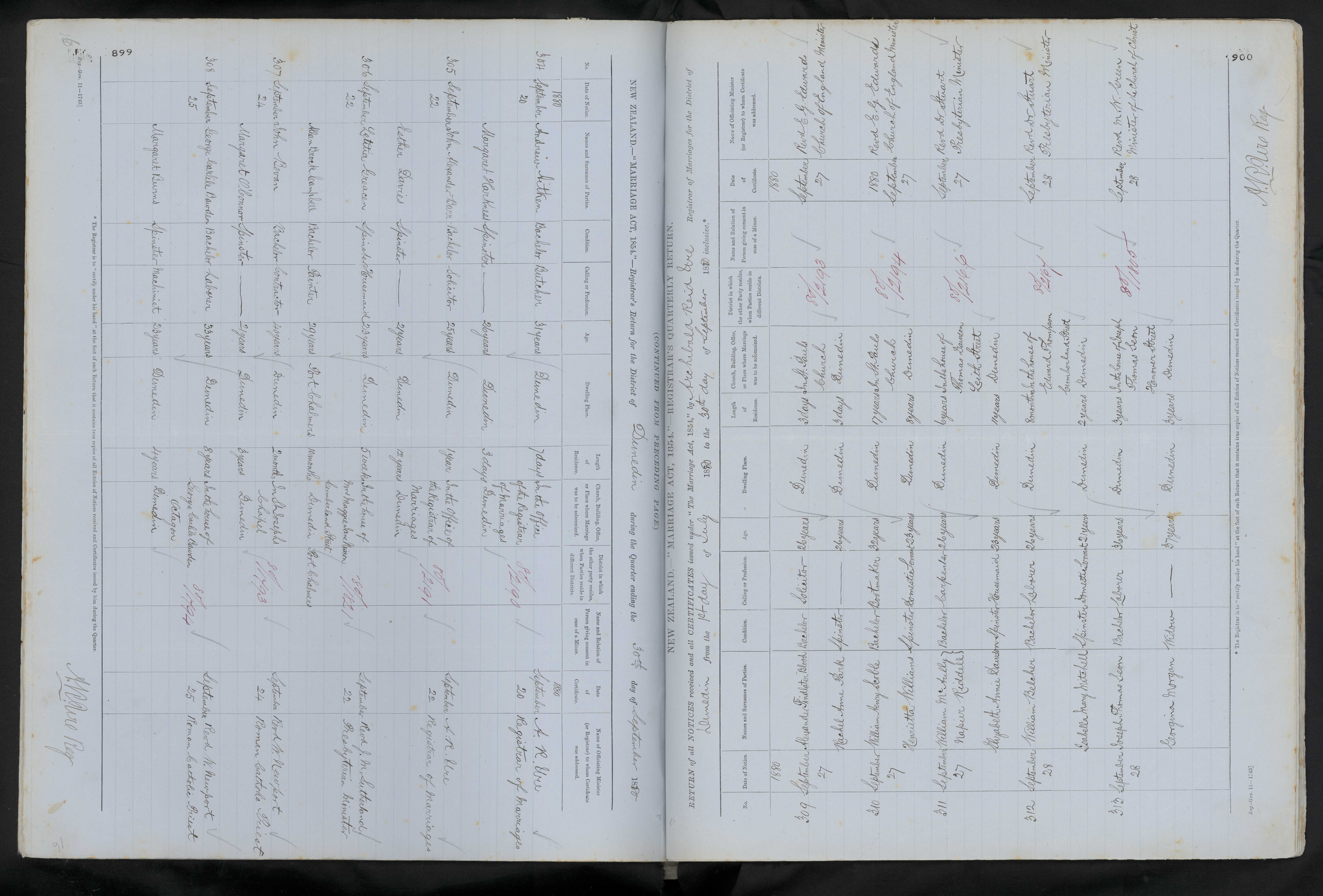 In the Office of the Registrar of Marriages 80/2191 22 September 1880 A. R. Ure Registrar of marriages