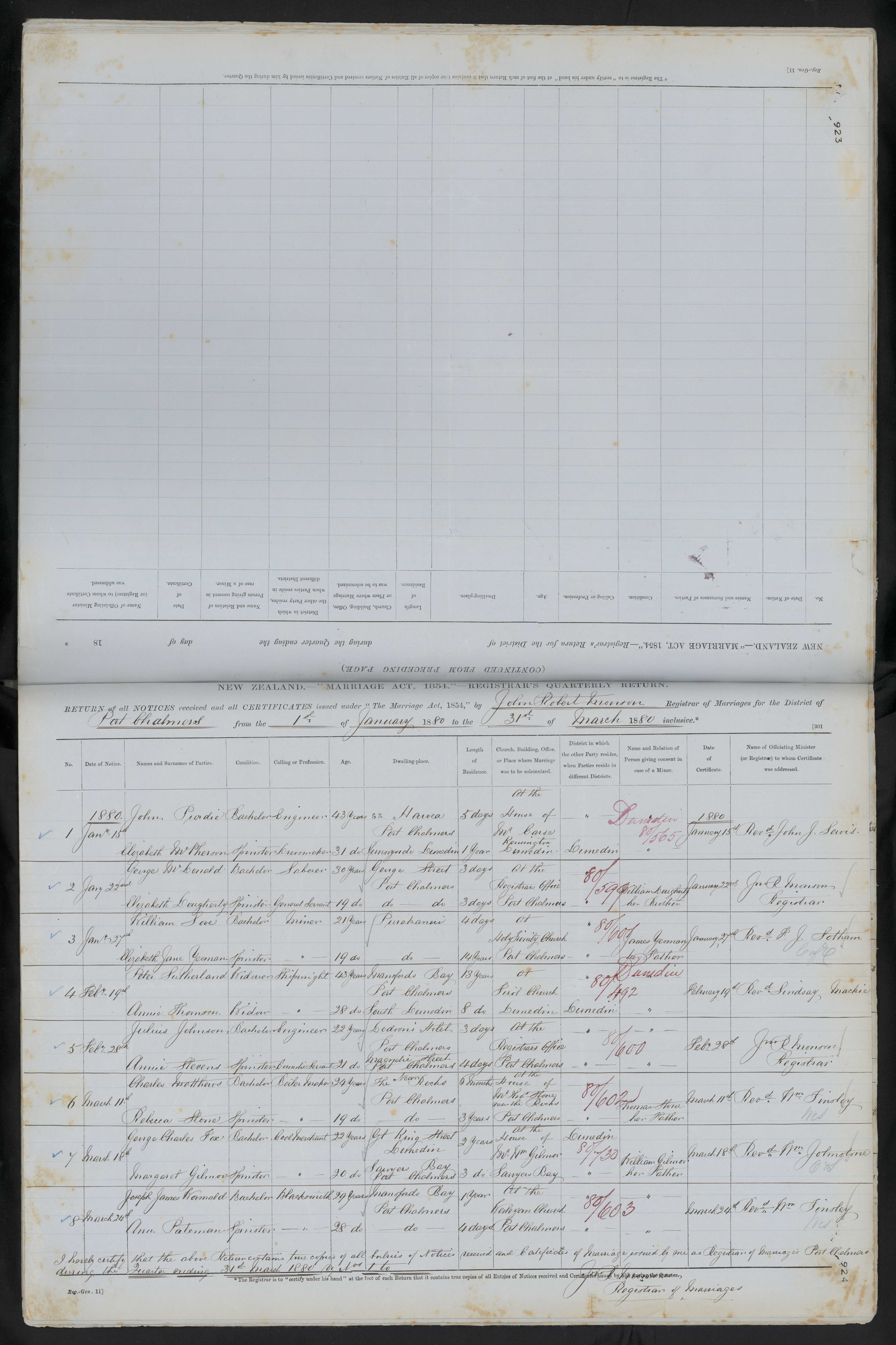 At the Wesleyan Church Port Chalmers | 801 803 | 24 March 1880 | Rev. Wm Tinsley | ||||||||||||||||||||||||||||||||||||||||||||||||||