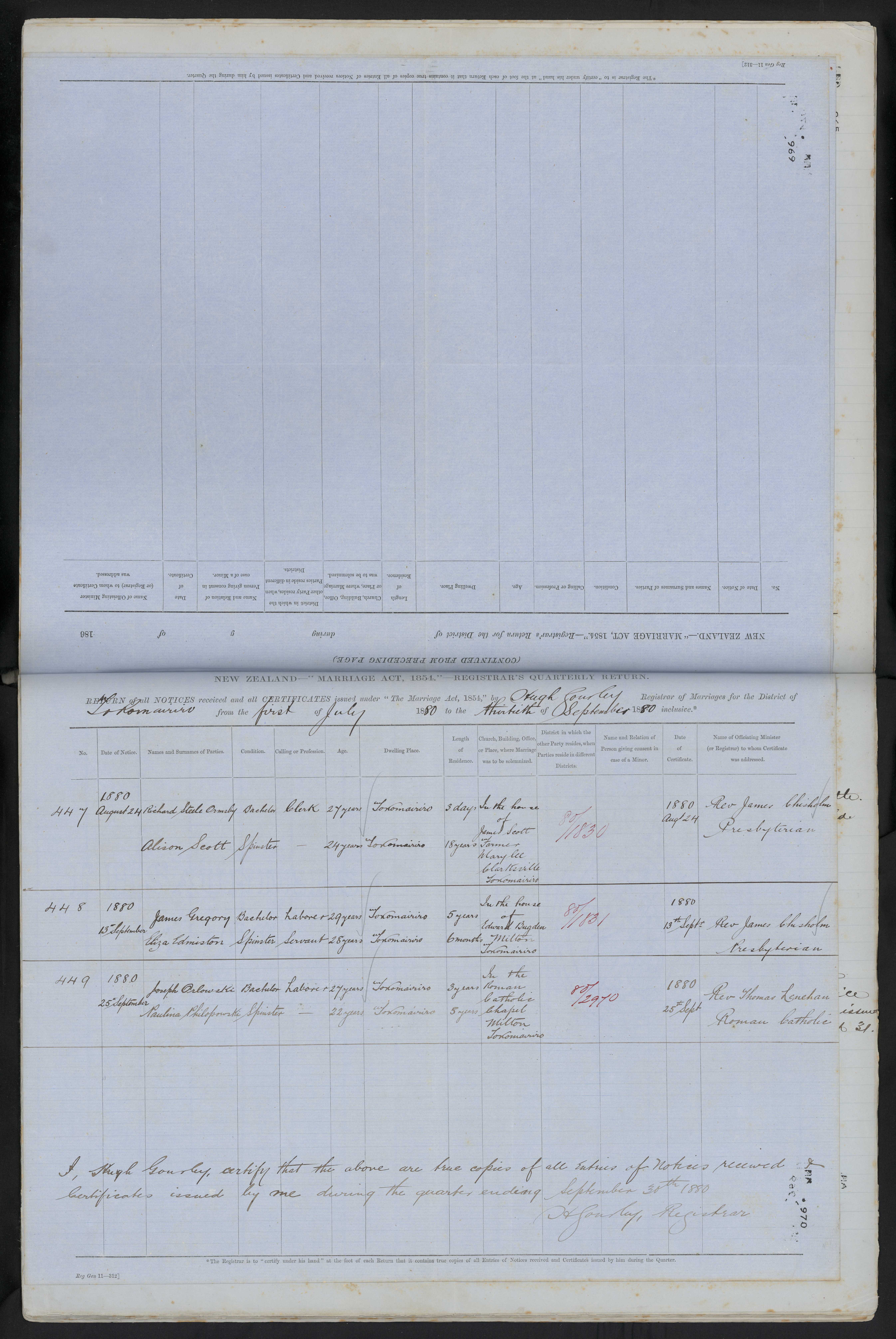 In the house of Edward Bugden Milton Tokomairiro 80/1831 13 September 1880 Rev James Chisholm Presbyterian