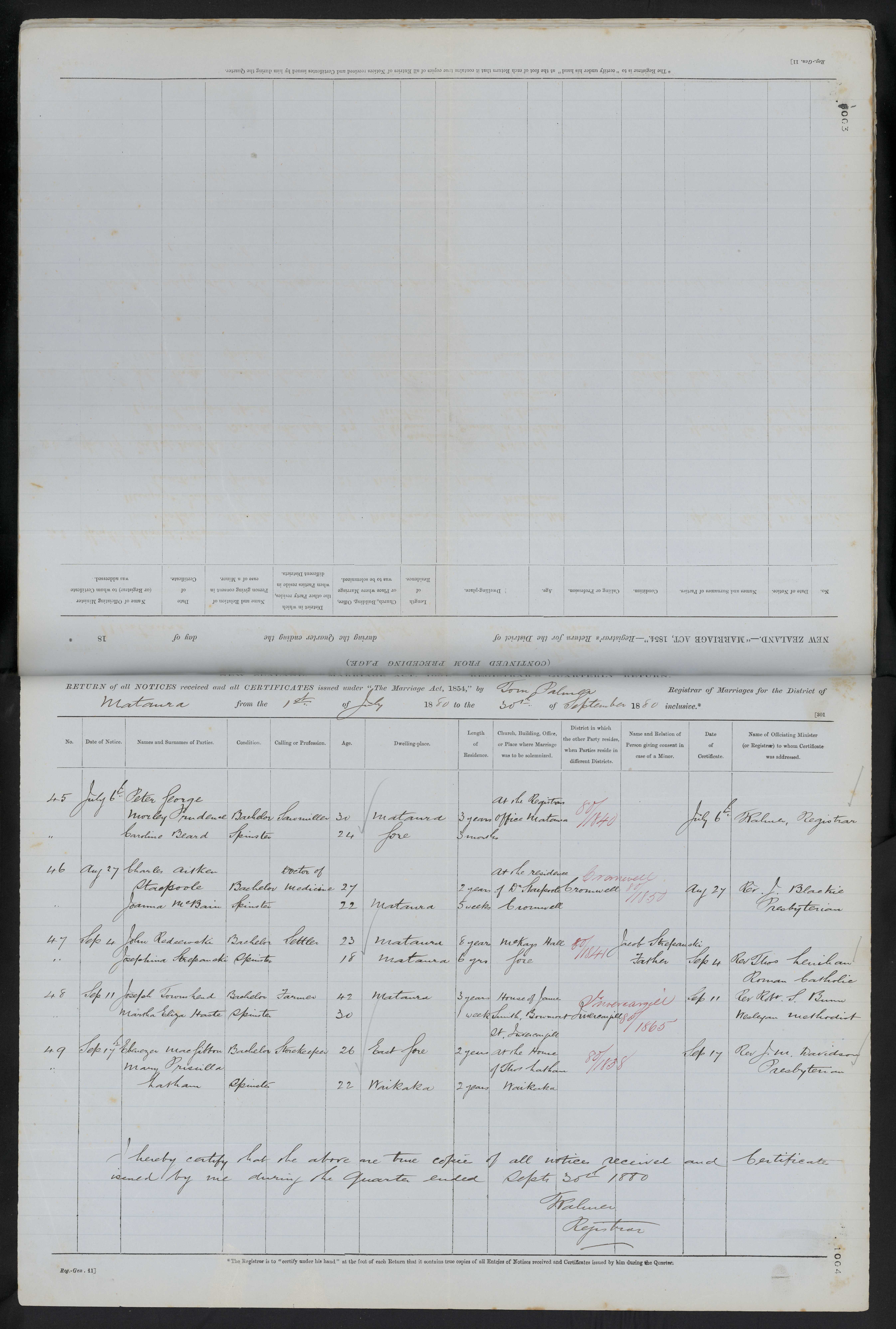 At the Registrar Office Mataura 807/1880 6 July 1880 Palmer, Registrar