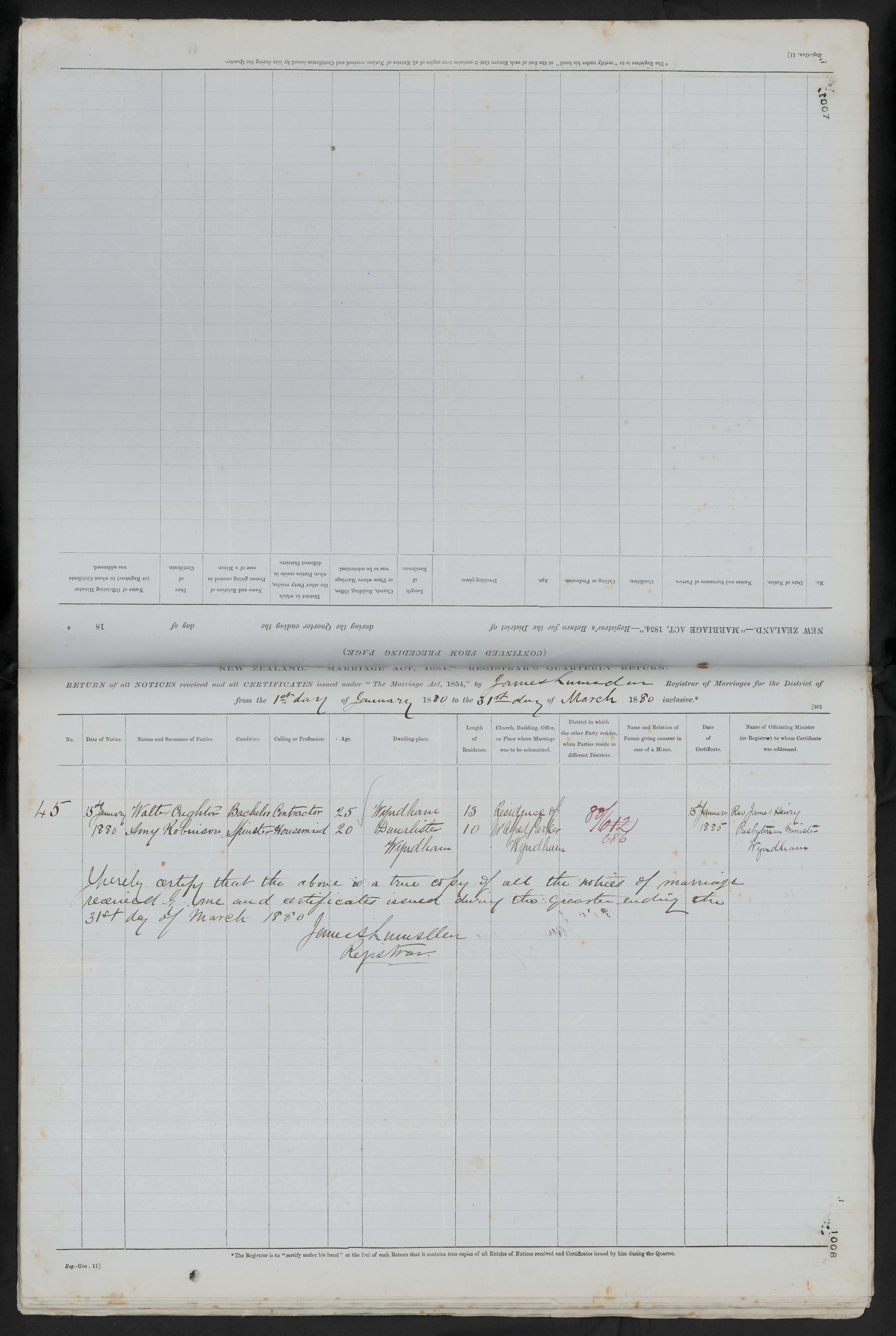 Residence of Walter Parker Wyndham 80/672 686 15 January 1880 Rev James Henry Presbyterian Minister of Wyndham