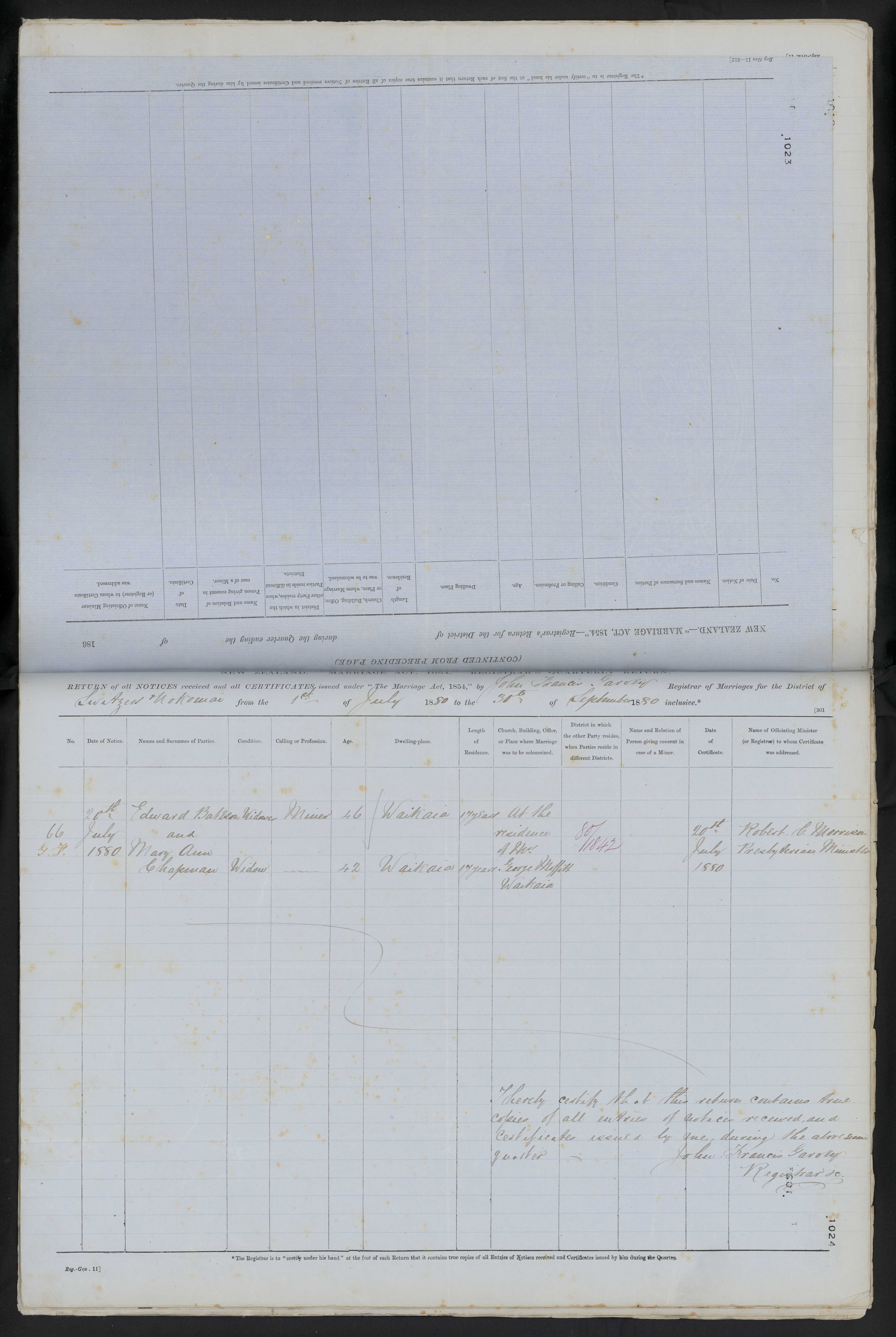 Marriage Place At the residence of Mr George Maffith Waikaia