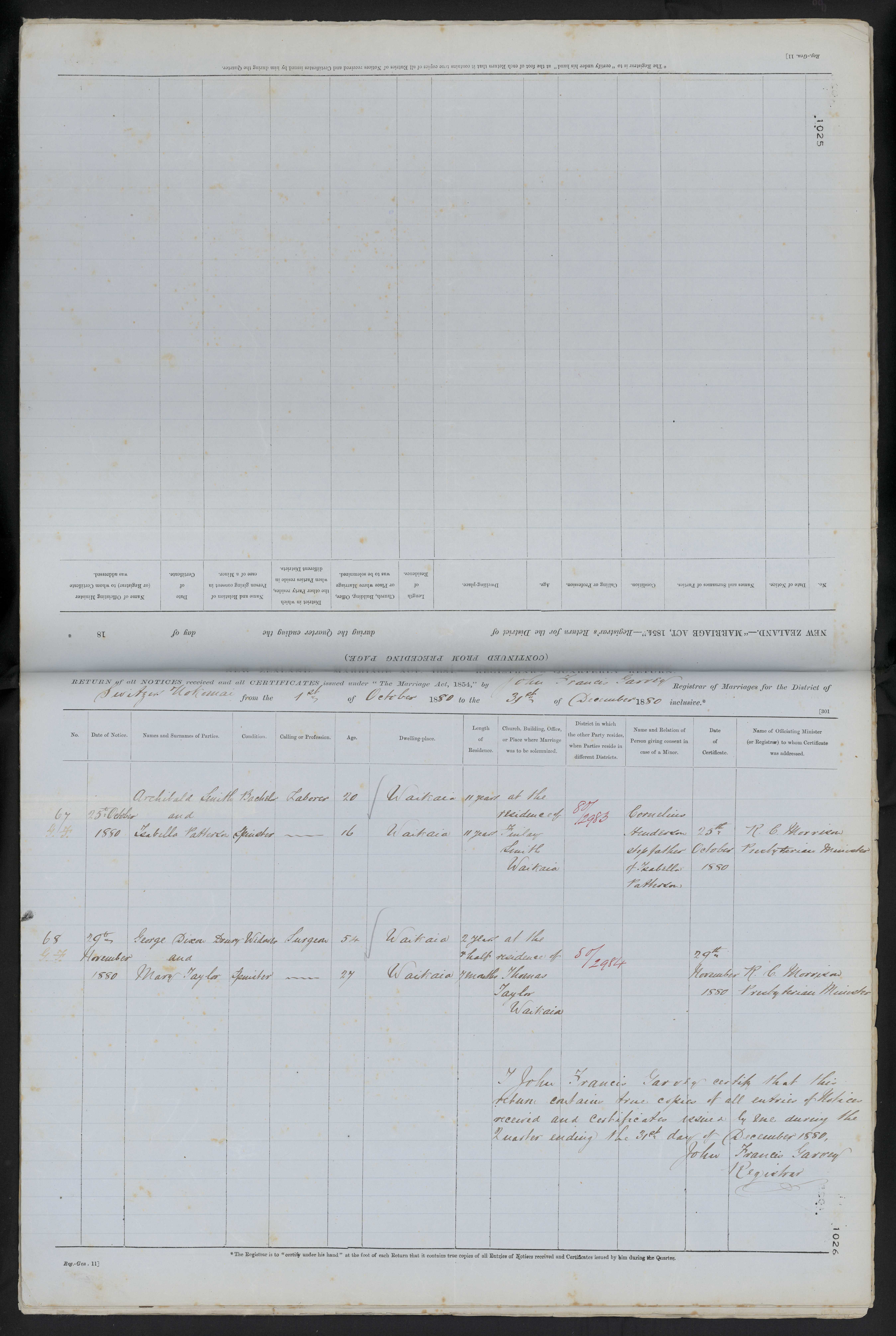 at the residence of Thomas Taylor Waikaia 501/12984 29 November 1880 R. C. Morrison Presbyterian Minister