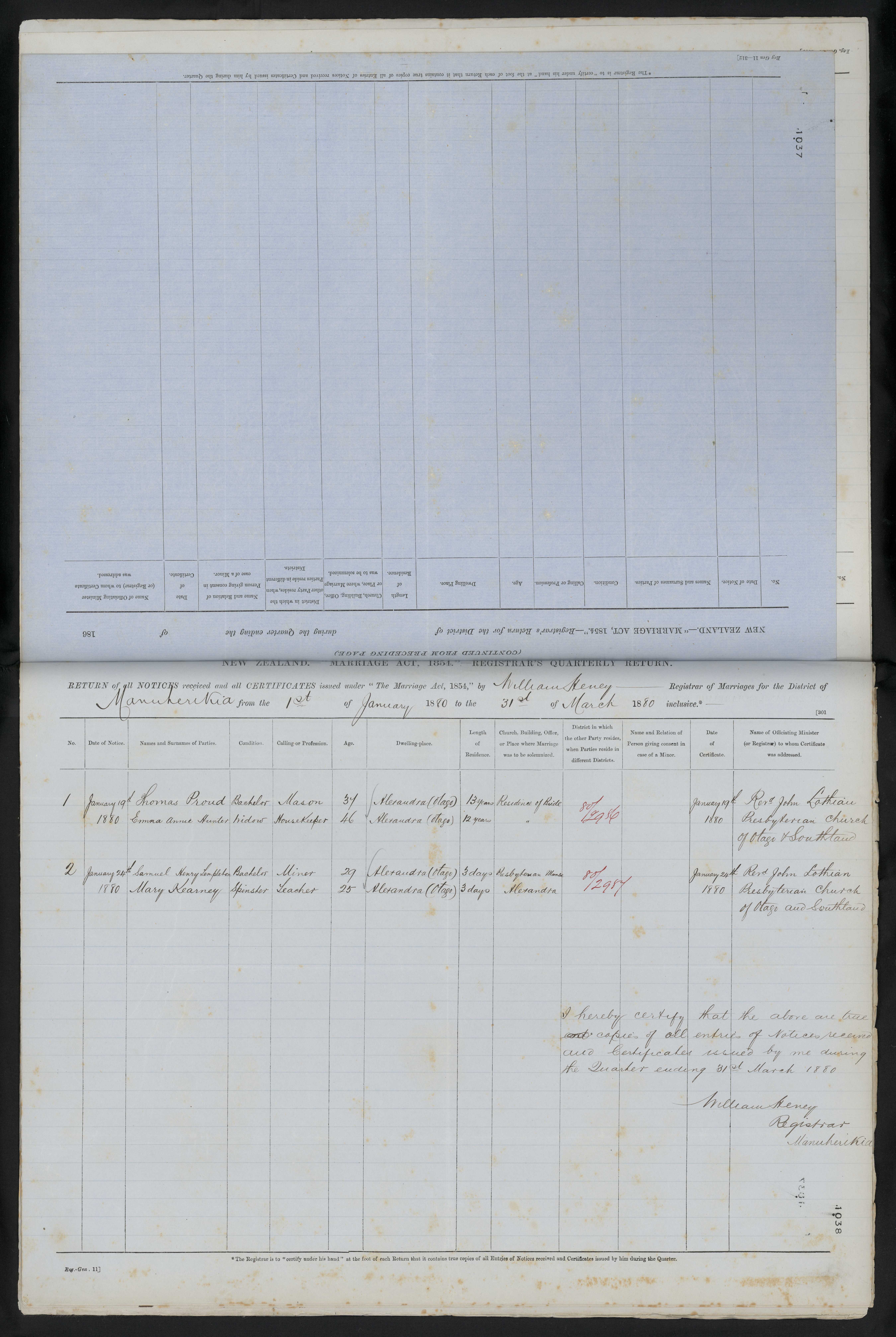 Residence of Bride 80/12986 19 January 1880 Rev. John Lothian Presbyterian Church of Otago & Southland